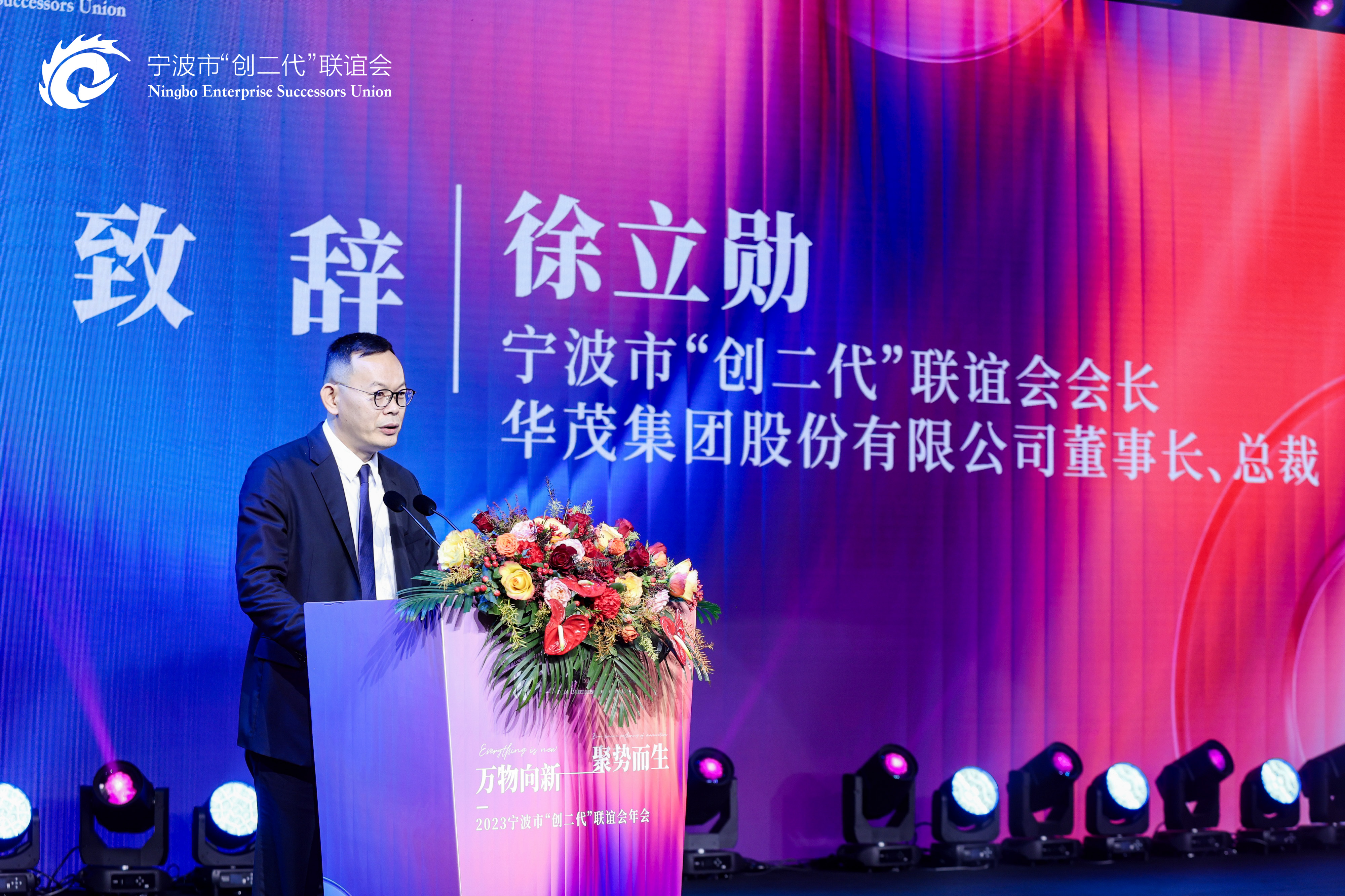 宁波市“创二代”联谊会会长,华茂集团股份有限公司董事长、总裁徐立勋在年会上表示,联谊会是一支有生命力、战斗力、向心力的队伍,疫情三年,联谊会企业家们经受住了考验,保持了旺盛的发展势头。他指出,当前乃至今后发展一段时间,发展不确定因素或将持续增多,联谊会的小伙伴们要做好充分准备,在“不确定”中找到自身的“锚点”,对中国发展保持信心,做好自己,专注创新、保持活力、善于坚持。他强调,做企业就是做自己,希望联谊会小伙伴们走出一条适合自身发展的道路,并祝愿大家在龙年行大运、展宏图。