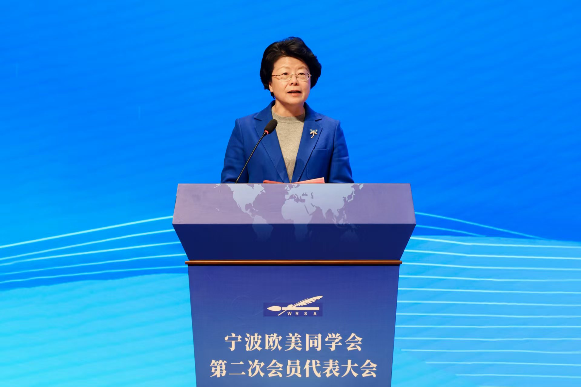 宁波欧美同学会第二届理事会会长王丽萍作表态发言。市科协主席、市知联会会长刘立群代表市各人民团体致贺词。