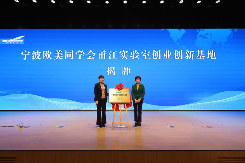 王丽萍和宁波欧美同学会第一届理事会会长、甬江实验室主任、党委书记崔平为宁波欧美同学会甬江实验室创业创新基地揭牌。