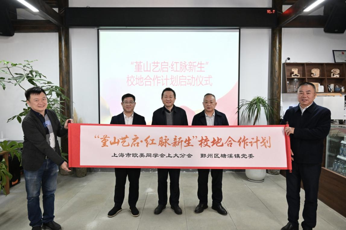 本次“思享会”旨在推动高校智力资源与地方发展需求深度融合,共绘乡村振兴蓝图。会议指出,校地合作是推动乡村振兴的重要路径,期望将高校的人才、科研优势与地方的人文底蕴、发展活力充分融合,让今天的座谈成果落地生根,实现共建共赢。 活动期间,上海大学与塘溪镇共同为“行走的课堂”大思政课实践教学点揭牌。该基地将推动理论教学与乡土实践有机结合,成为立德树人、服务基层的重要平台。“堇山艺启·红脉新生”校地合作计划正式启动。该合作计划围绕塘溪镇发展需求,推出六大专项计划:知行合璧校企共育计划,依托上海大学管理学院资源,破解乡镇外贸人才短缺难题;童夏家村古村生态守护者计划,开展古建筑保护与生态解说系统设计;沙村墨韵品牌提升计划,打造书法村视觉标识与互动艺术墙;上周村蝴蝶谷堇山艺术赋能计划,以3D壁画、环保雕塑助力蝴蝶谷文旅开发;童村蒙学礼韵文化活化计划,设计沉浸式蒙学礼体验项目;文体旅一体化发展计划,推动户外运动与美丽乡村建设融合发展。 会后,与会人员实地走访沙村、童村、上周村、童夏家村,考察塘溪乡村建设与文旅开发现状,加深了对这块人文底蕴深厚、自然山水秀美的土地的认识。“欧美同学会是党领导下、以归国留学人员为主体的群众团体,会员具有高学历、高职称、宽视野等优势,”上海市欧美同学会上大分会秘书长黄俊逸表示,“希望通过此次合作,充分发挥留学人员人才库、智囊团、生力军的作用,助力地方经济社会发展。”