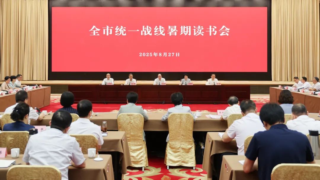 8月27日,全市统一战线暑期读书会举行。省委常委、市委书记彭佳学出席并与党外代表人士座谈。他强调,全市统一战线要深入学习贯彻习近平总书记关于做好新时代党的统一战线工作的重要思想,紧扣“4+1”重要要求和“132”总体工作部署,同题共答、同频共振、同向发力,为现代化滨海大都市建设作出更大贡献。